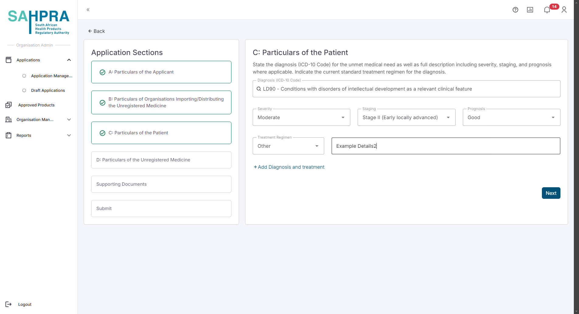 Unlike the Named Patient application, the Multiple Patient application requires general diagnosis information for the patient group rather than individual patient details.