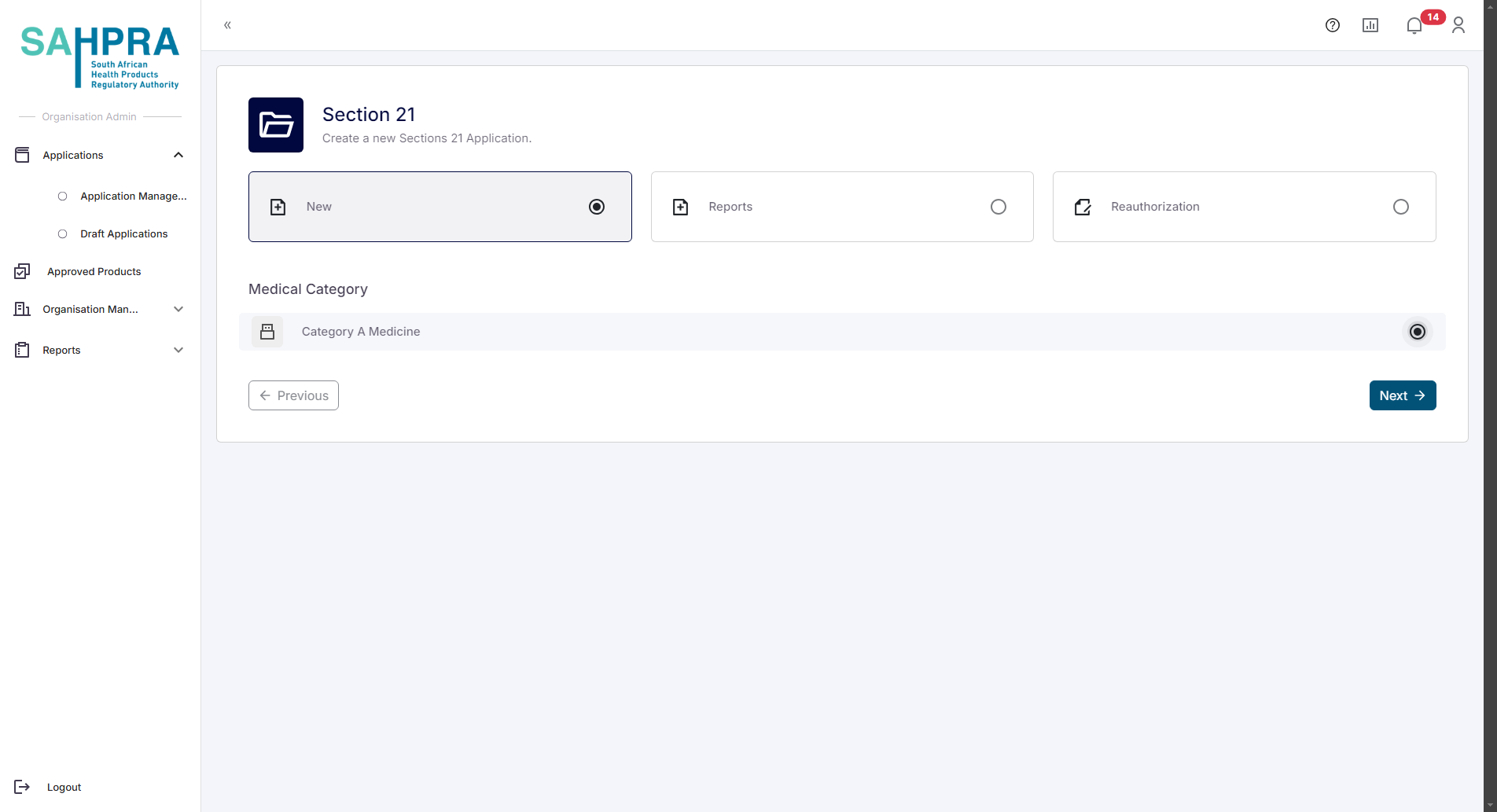 Select the appropriate medicine category (e.g., “Category A Medicine”).