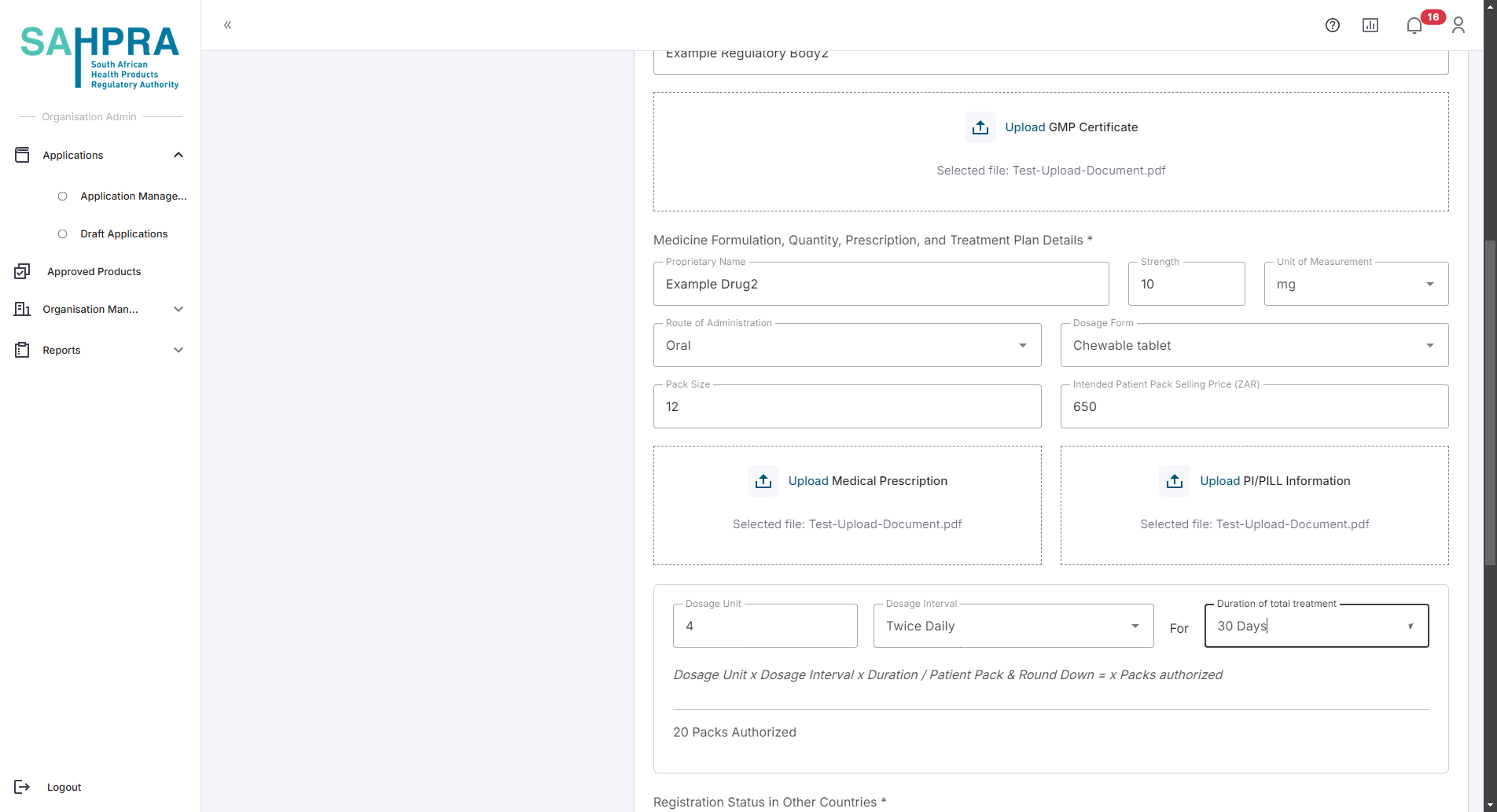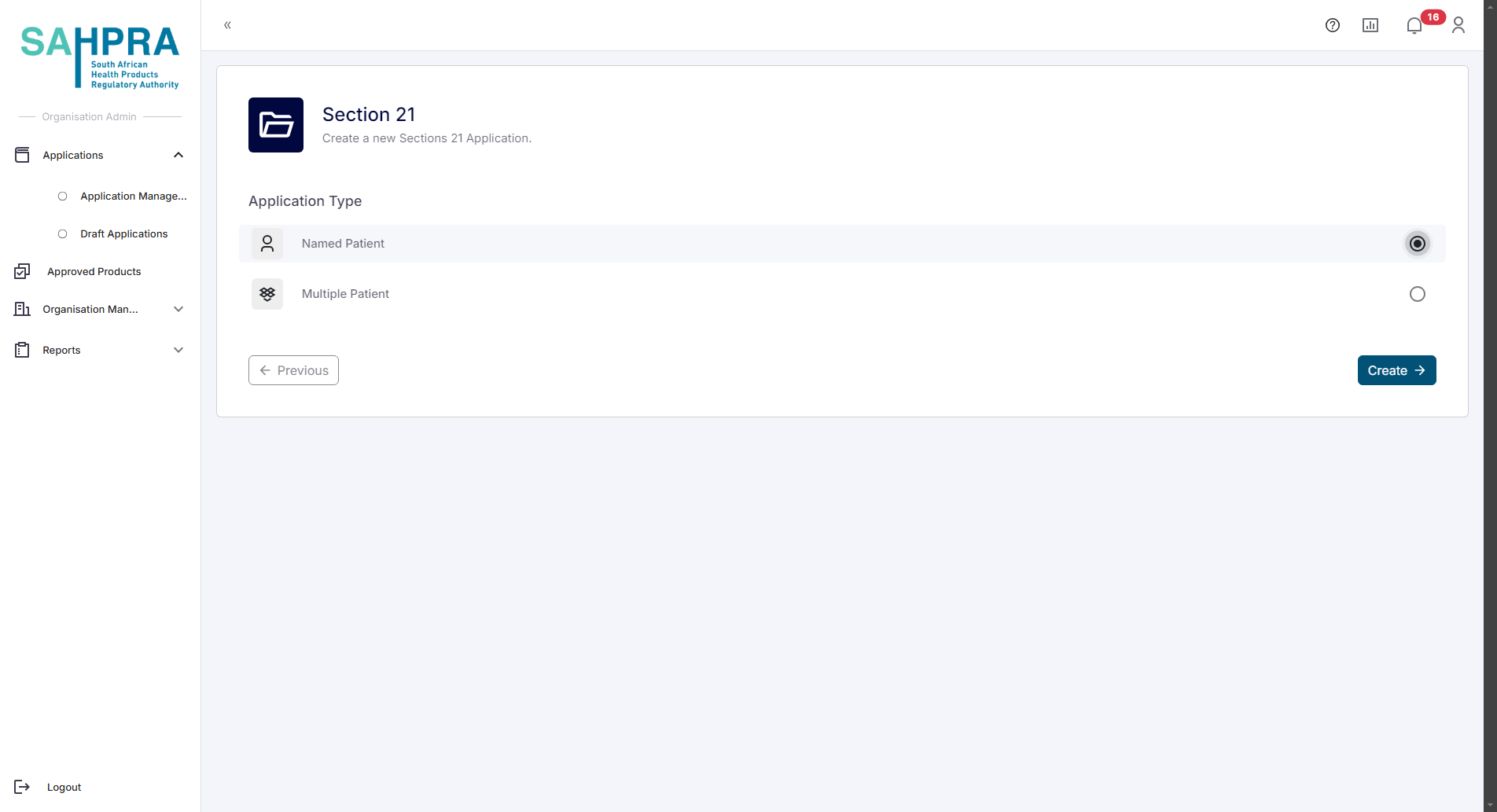 - Log in to the SAHPRA portal.