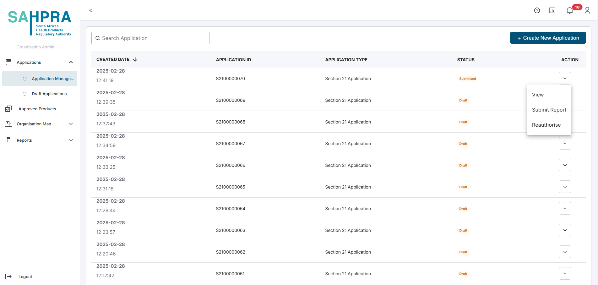 Once on your Application dashboard navigate to any approved Section 21 application and click on the ellipse icon on the left side of the application entry. Here is an option labelled “Submit Report” which can be clicked and opens the report to be completed.