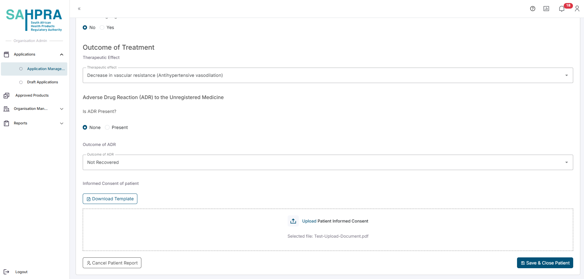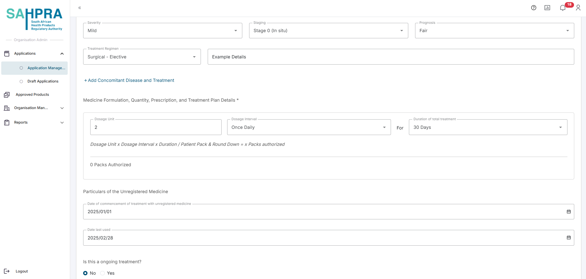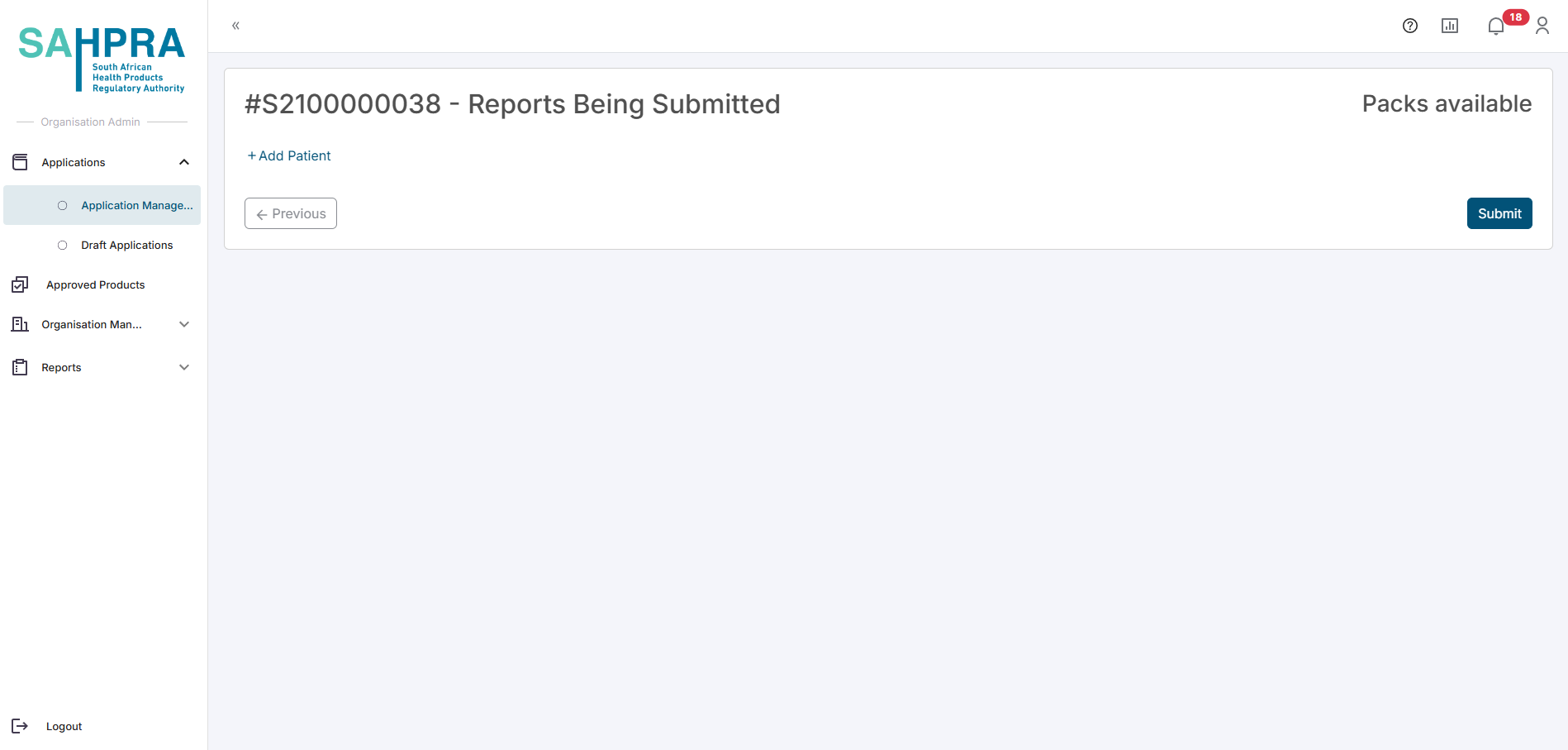 - This report requires you to add the patients that were treated with the approved Section 21 medicine. You will note that the packs authorized will be displayed in the top right corner and must be allocated fully between the patients.