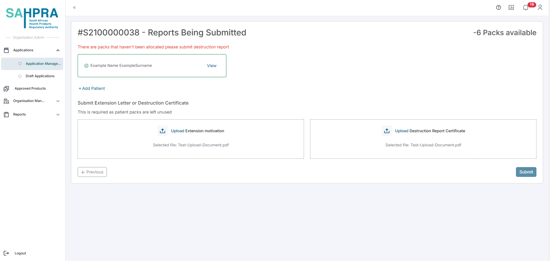 If not all the packs are allocated to patients either a Destruction Report or Request for Extension must be uploaded to the report to account for the unallocated packs.