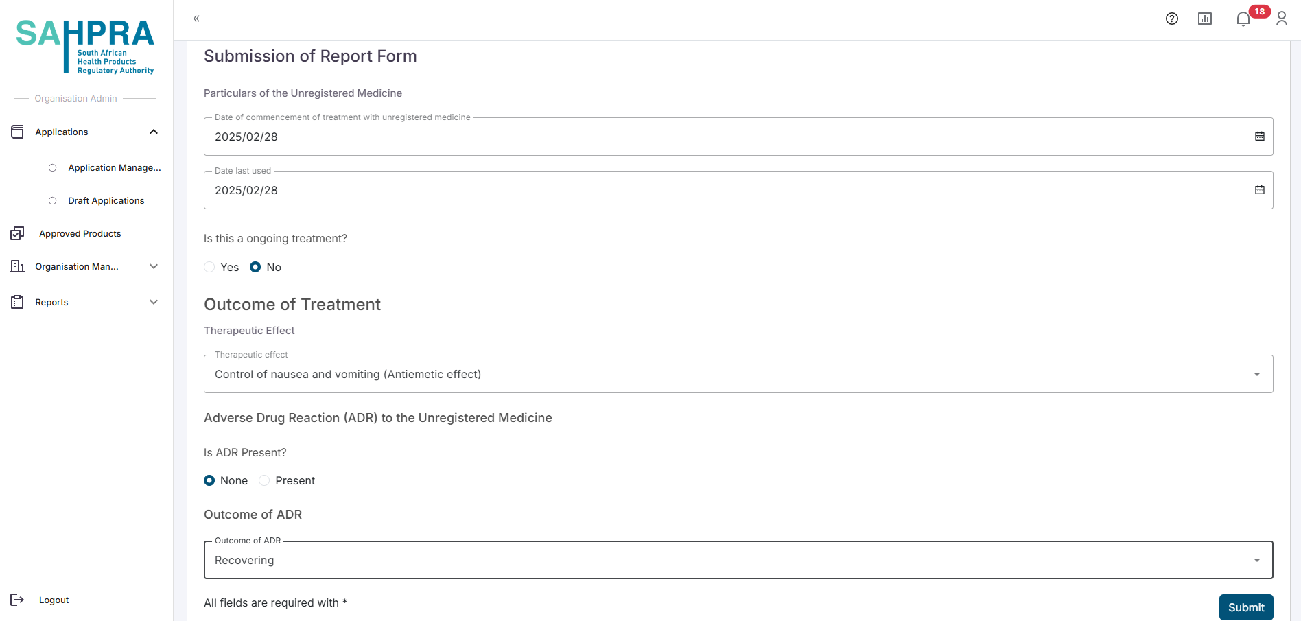 Click on “Submit” to complete the report